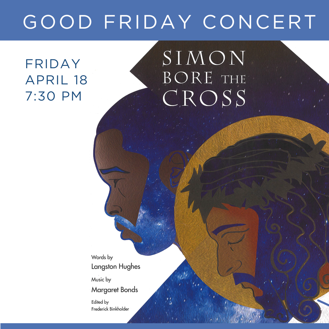 "Simon Bore the Cross," words by Langston Hughes, music by Margaret Bonds, will be presented by FPC's choir. Written in 1965, the piece has been newly orchestrated for strings, harp, and organ by Malcom Merriweather, director of the New York Philharmonic Chorus. A free will offering will be collected. No tickets necessary.